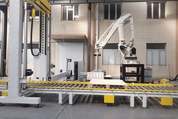 軍工行業(yè)包裝線的最大特點(diǎn)就是物料重、體積大,因此在碼垛機(jī)器人的選擇上也必須配套大負(fù)載、頻率高且運(yùn)行穩(wěn)定的設(shè)備,同時(shí)可配以頂壓機(jī)芯捆扎機(jī),實(shí)現(xiàn)PET帶的井型捆扎,可將物料與托盤(pán)緊密的固定,同時(shí)配以懸臂纏繞包裝機(jī),實(shí)現(xiàn)雙重保護(hù)。