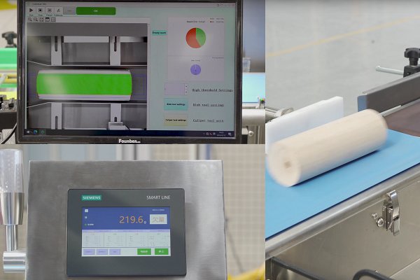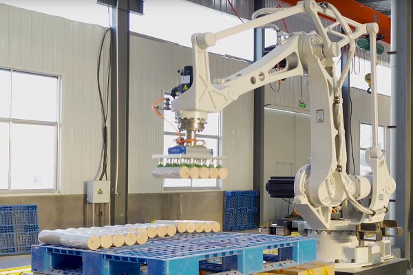 燃料棒自動套膜收縮碼垛包裝線,主要由輸送機、視覺識別、稱重剔除機、自動整理、套膜收縮機、自動供棧機、機器人自動碼垛機、全自動在線纏繞機等設(shè)備組合而成。