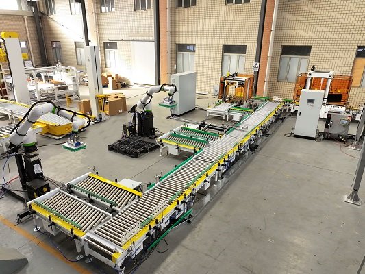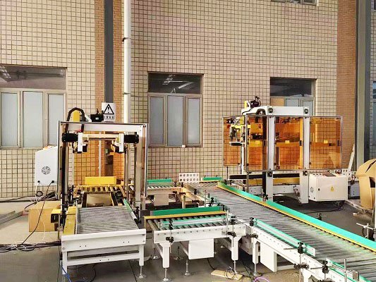 全自動(dòng)伺服封箱機(jī)是采用伺服電機(jī)為主要驅(qū)動(dòng)機(jī)構(gòu),針對(duì)不同紙箱的混產(chǎn)情況,用戶可提前將所有紙箱錄入封箱機(jī)內(nèi),由上位機(jī)與封箱機(jī)通訊,可實(shí)現(xiàn)紙箱的一鍵換產(chǎn),一字封與工字封可任意切換和選擇,尾端配有貼標(biāo)和移載機(jī)構(gòu),由光電識(shí)別將不同的紙箱碼到不同的托盤上,該線體配備了進(jìn)口協(xié)作式機(jī)器人,立柱可升降,充分滿足不同高度及垛型的需求。性能更穩(wěn)定,占地面積小,成本低。